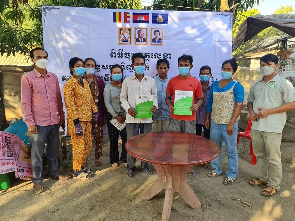 On 7 February 2022, the AIMS project team organized a signing ceremony of the Sale and Purchase Agreement of Chicken between farmers of the AIMS project from the Chicken Production Group and a local chicken dealer in Thmar Krae Kandal village, Thmar Krae commune, Chet Borey district, Kratie province.